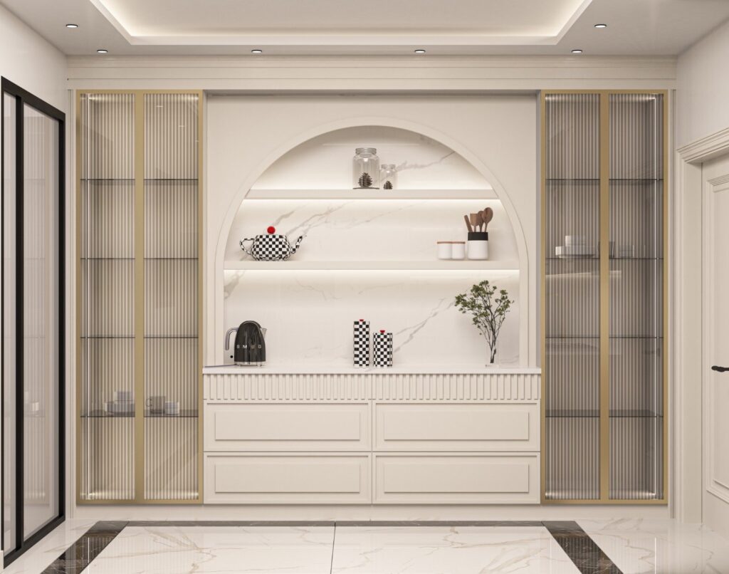 Projede kullanılan mutfak mobilyaları, ipeksi mat malzemeden üretilerek zarif bir dokunuş kazandırıldı. Mutfak dolapları, hem estetik hem de uzun ömürlü bir kullanım sunacak şekilde tasarlandı. Ergonomik yapısıyla dikkat çeken bu alan, günlük kullanımda maksimum rahatlık sağlıyor.