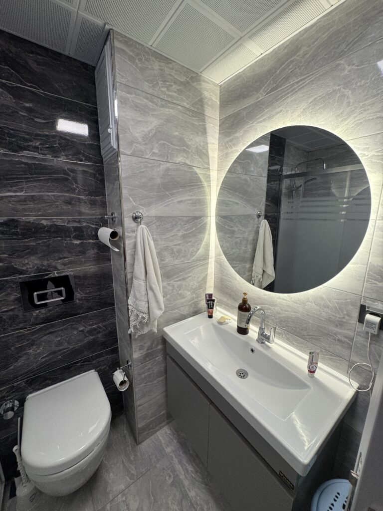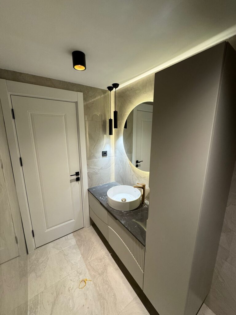 Banyo ve WC alanlarında, günlük kullanımı kolaylaştıran ve şıklığıyla öne çıkan seramikler tercih edildi. Kir ve leke belli etmeyen renk tonları ve uzun ebat seramikler, mekâna hem modern hem de fonksiyonel bir hava kattı.